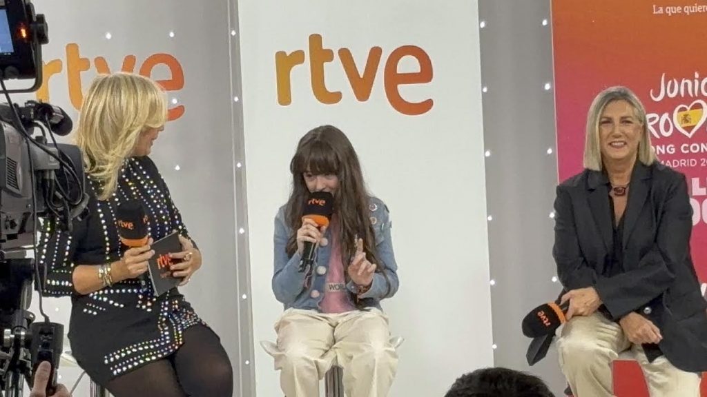 This morning, the long-awaited moment finally arrived as Chloe DeLaRosa, Spain’s representative for Junior Eurovision 2024, introduced her song “Como la Lola” to the press. The event, held in Madrid ahead of the contest on November 16th, showcased the young star’s undeniable charm and natural stage presence. Accompanied by Ana María Bordas, executive producer of the competition, and María Eizaguirre Comendador, head of communications at RTVE, Chloe confidently shared her excitement about the song, describing it as a «winner with great power.»